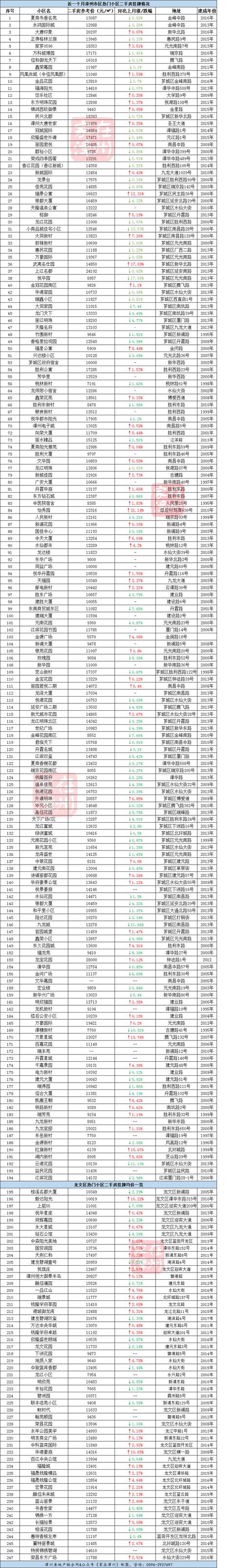 10月漳州各小區二手房房價是多少?